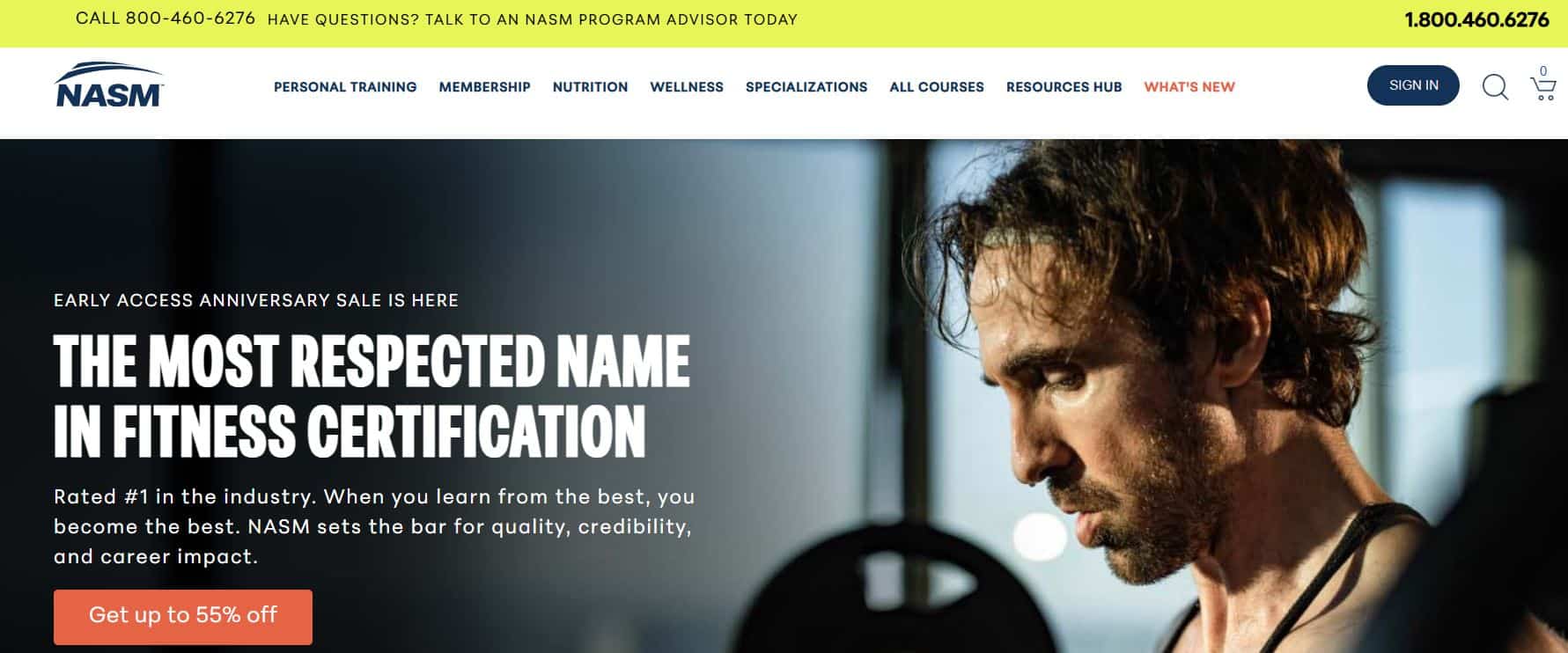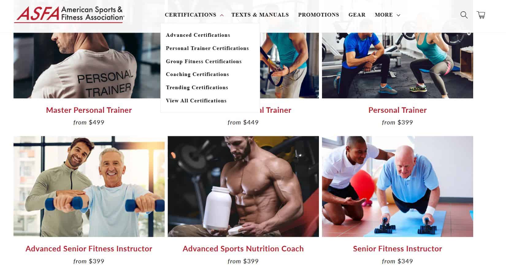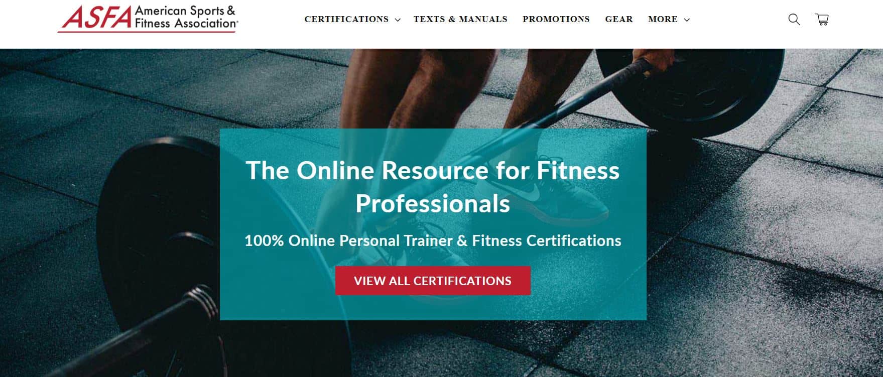 ASFA has a history of expertise and reliability in the fitness industry, but they don’t offer the same partnerships as ISSA or NASM. They are an ideal certification program for people who already have knowledge of subject matter and simply want to take a test to confirm their credentials.