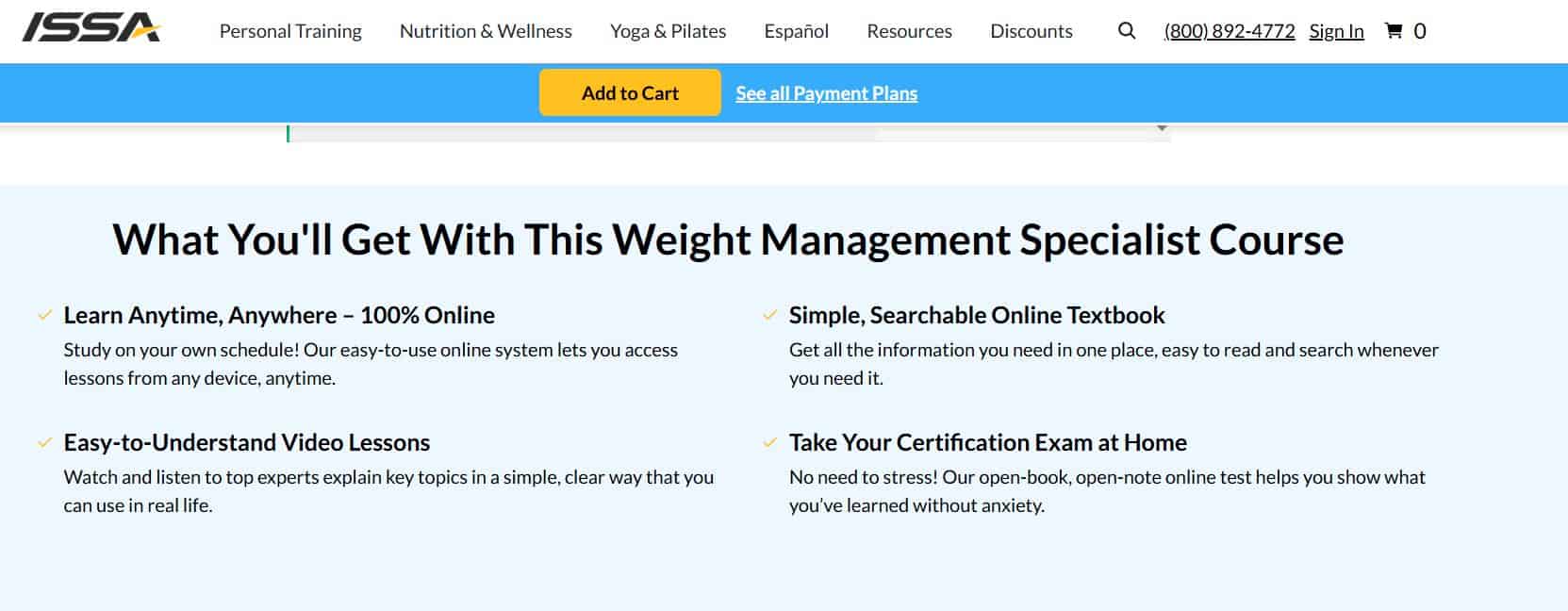 ISSA has a program designed to be entirely accessible online. It’s also a self-paced program that uses a combination of different learning methods like video content, audio content, live webinars every week, and of course reading material to help you find a method for content absorption that works best.