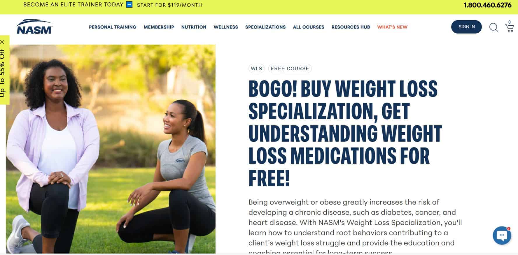If I’m going by cost alone, this is the best weight loss trainer certification because you can pay $1,000 for the lifetime certificate that doesn’t expire, which means you don’t have to renew every year for a small fee nor do you have to invest in additional continuing education units.