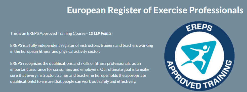 - This course is an approved training course by the European Register of Exercise Professionals, so if you are an instructor, trainer, or teacher in Europe, this is an appropriate qualification(s) to ensure that people can work out safely and effectively.