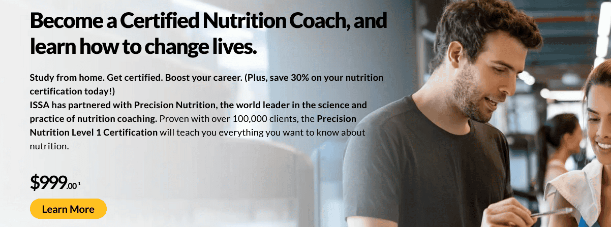 Ultimately, the ISSA Nutrition Coach Certification is a great choice for personal trainers and health coaches looking to up their game and expand their knowledge and offerings. If you’re looking toward a more clinical track or advanced nutritional counseling, you may want to look elsewhere.