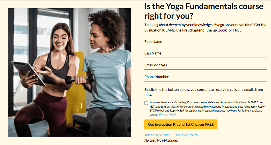 Full disclosure, many of the ISSA courses/certs come with some form of weekly Zoom meeting, and all students in that course can email in questions ahead of time and get them answered. The Yoga course is no different.