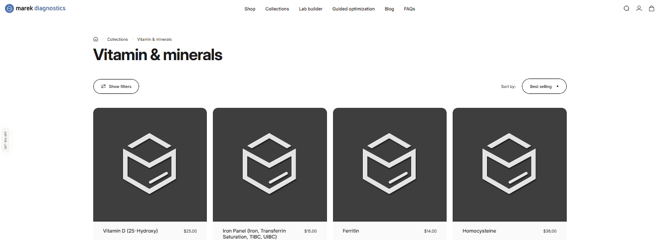 If you have any pre-existing conditions or you are worried about your risk for certain conditions, Marek offers more expensive but more robust panels with tests for things like dementia and tumor development that are not available with Lifeforce. You can actually shop with Marek for a la carte items, including individual tests for things like hormones, inflammation, or heart health as well as specialty panels or bundles.