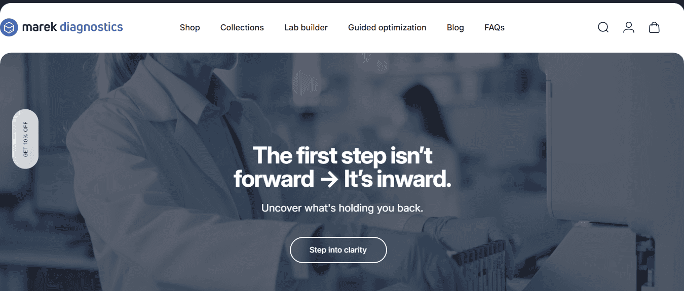 Marek is a great option for those who want genetic testing, not just biomarker testing. More to the point, they have a much more robust panel of biomarkers that are tested, as well as options for more advanced or custom tests if you have pre-existing conditions.