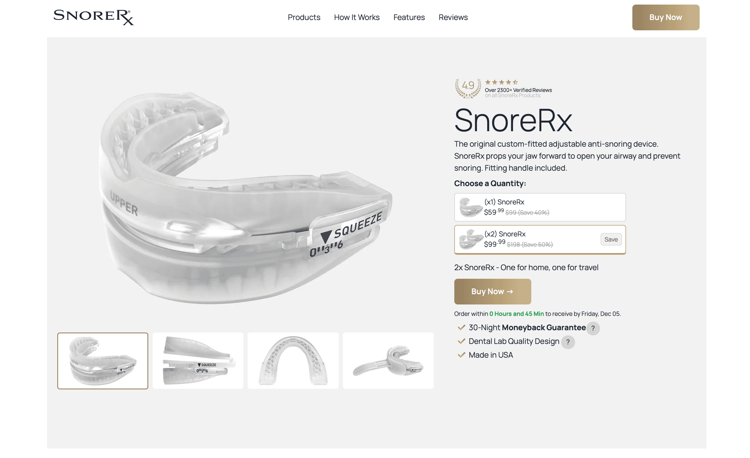 Mouth taping forces the mouth to stay closed and teaches nasal breathing. This is the least expensive option, so you can try it out without breaking the bank if it doesn’t work for you. Try for a week as a diagnostic tool. If snoring drops dramatically and you feel better, great!