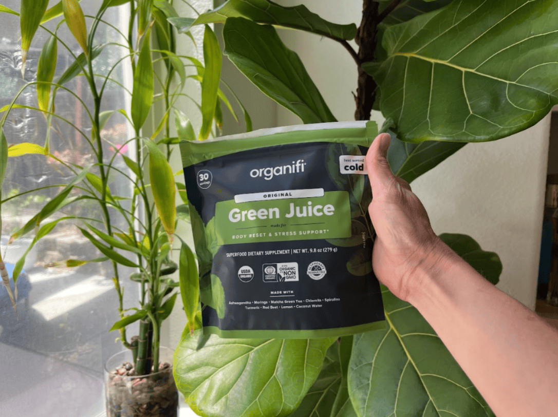 Oganifi Green Juice is a green powder supplement with more than 11 different ingredients. It has an “alkalizing” blend that serves as a prebiotic to keep the gut microbiome healthy and happy.